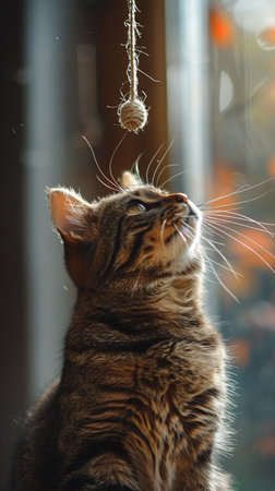 Cat toy from everyday objects, budget-friendly pet ideas, close up, thrifty theme, realistic, Composite, Kitchen backdrop