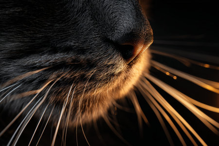 Macro Shot of Black Cat Whiskers in Candlelight Glow
