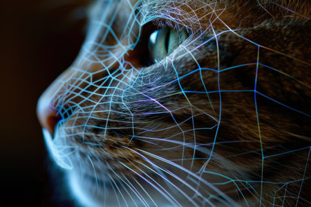 Conceptual Portrait of a Cat with Cybernetic Elements Indicating AI Perception and Data Processing AI