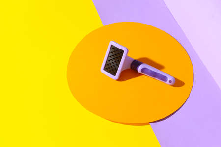 Grooming brush for pet on color background
