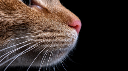 A close up of a cats face with long whiskers, AI