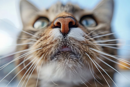 Cat Close up Portrait, Fun Animal Looking into Camera, Cat Nose, Wide Angle Lens, Funny and Adorable Animal, Oversized Cute Nose, Generative AI Illustration