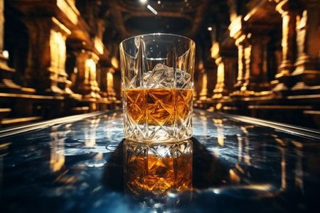 AI Generative Glass of whiskey on a dark background. Drink photo for bar restaurant