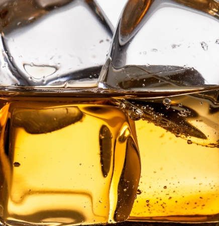Excellent whisky served with ice cubes in a glass of Old fashioned type