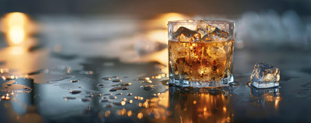 Whiskey, scotch, cognac, brandy, booze ice cube coctail liquor rum drinking high alcohol irish nightclub spirit glass. banner copy space poster background.