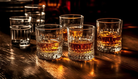 Golden liquid in elegant glass at bar generated by artificial intelligence