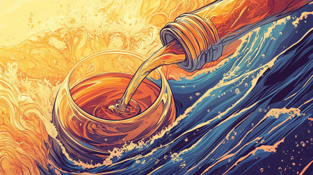 Pouring vitality captured in vibrant hues, this stunning artwork blends fluid motion and dynamic colors, creating a striking visual metaphor for energy. Generated A.I.
