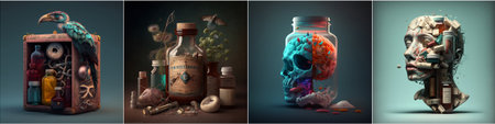 collage of 4 photos Famous and elegant piece of art Simple but detailed line work Human element integrated with precision art High realism with simplified shapes