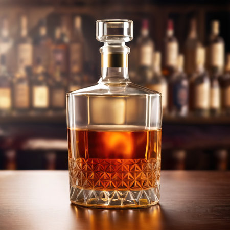 Whiskey in a glass on a bar counter with blurred background. generated by AI.