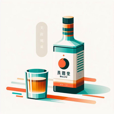 Tequila bottle and a glass of whiskey. Vector illustration.