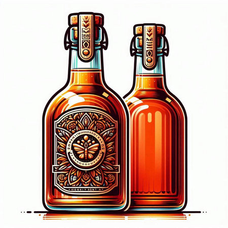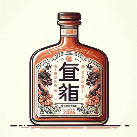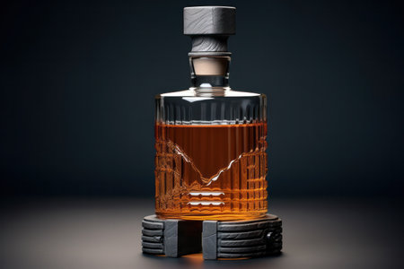 Bottle of brown alcohol: whiskey, brandy, rum, generic blank product packaging mockup photo
