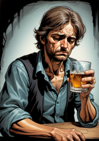 drunk man drinking a glass of whiskey. alcohol addiction concept.