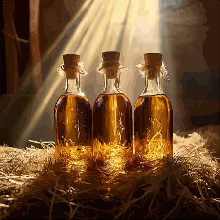 Three Ancient Myrrh Bottles Resting in a Golden Hay Bed