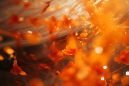 Abstract digital background graphic with simple random blurry small circles bokeh particular pattern design, beautiful neon flame light particulars growing in the space