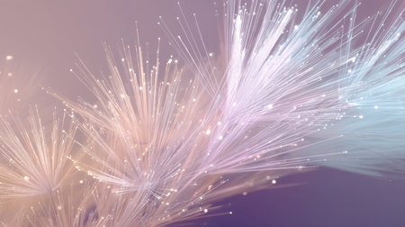 Discover a captivating visual of sparkling threads of light with glowing particles set against a soft background. Perfect for abstract art and digital projects.