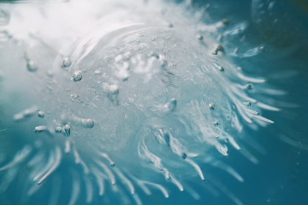Unusual macro abstract background. Wet blue sponge in extreme macro