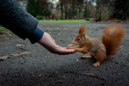 Woman hand feeding Belgian Heavy Horse at farm in North Texas, America