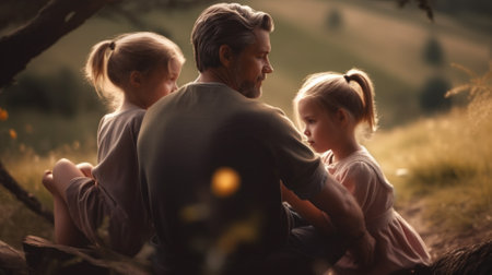 During difficult times, a loving solo dad comforts his son, providing support, reassurance, and a sense of security with his nurturing presence and affectionate care.AI Generated