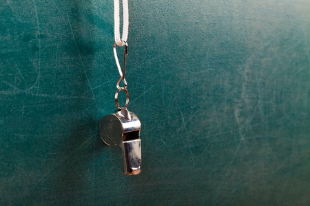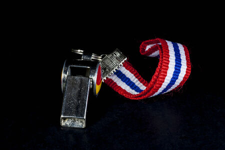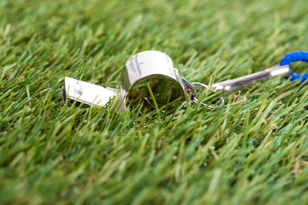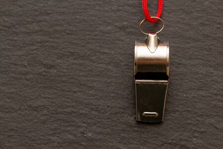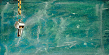 Whistle of soccer referee or trainer on grungy background. Great soccer event this year, soccer championship concept