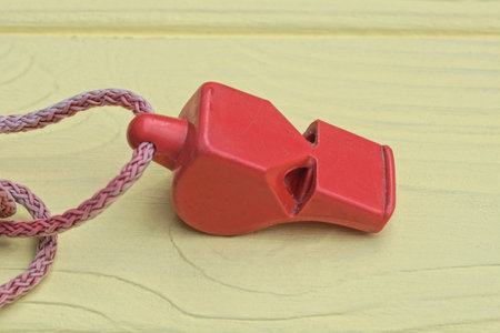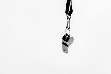 A single basketball coach whistle with lanyard, placed neatly on aesthetic background