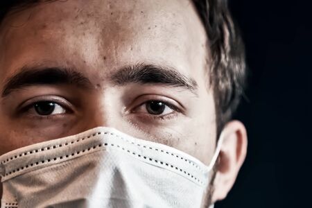 Man in mask. Protection against contagious disease, coronavirus. Sick and dramatic view