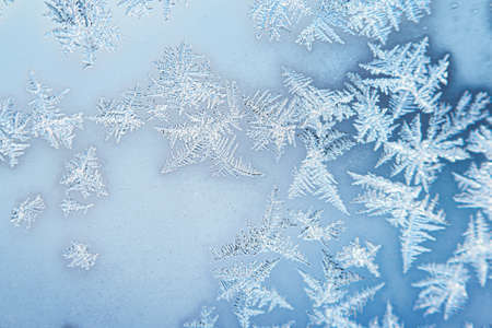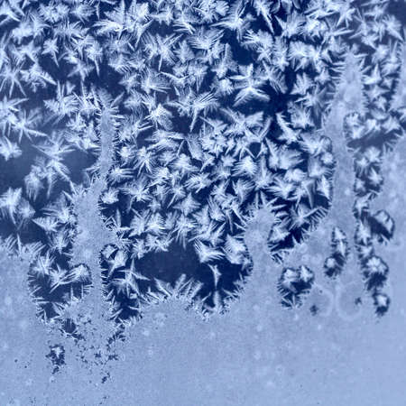 Frosty natural pattern on winter window glass. Abstract background.