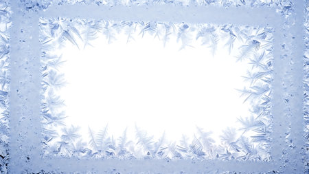 Frosty natural pattern on winter window glass as a background.