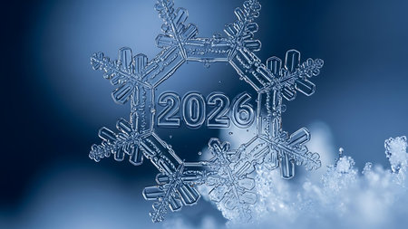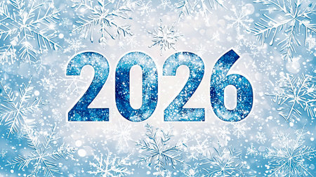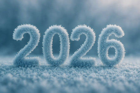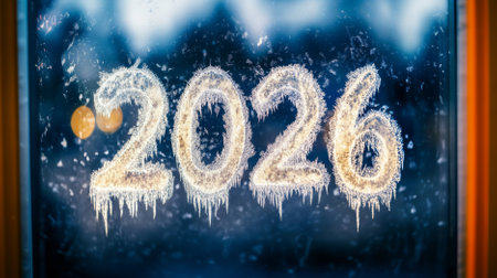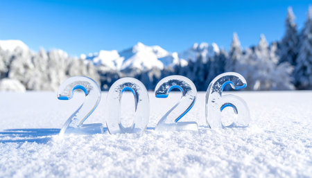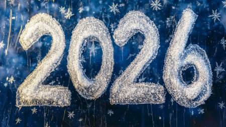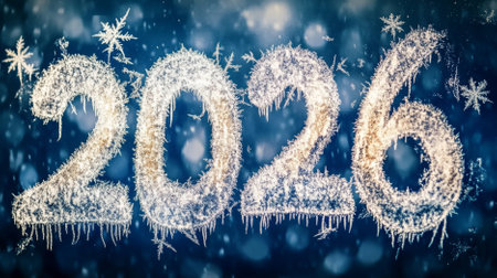 Frosted 2026 numerals resting on icy snow, symbolizing the new year, winter season and a crisp, frozen beginning for the future