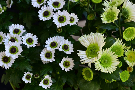 chrysanthemum bushy Feeling Green. very close-up macro shot.