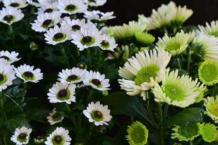 Green and yellow chrysanthemum flowers