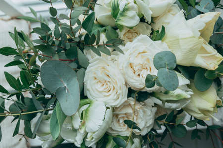 Wedding flowers, closeup bridal bouquet. Decorations made of fresh flowers, houseplants, close-ups, focus, objects and other interiors.