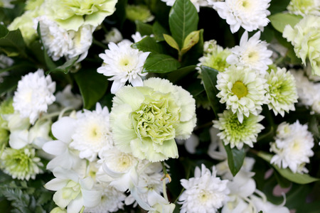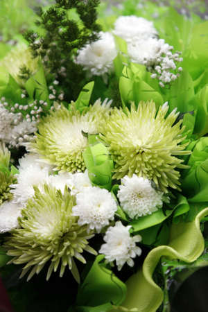 Bouquet from green and white chrysanthemums