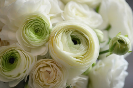 White ranunculus in a bouquet closeup. Persian buttercups bouquet of spring flowers. AI generated