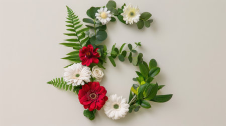 A beautiful floral arrangement showcasing the number 5 creatively designed with vibrant flowers and lush greenery, ideal for various celebrations.