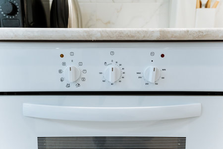 Temperature regulation control panel and knobs in modern electric kitchen cooker
