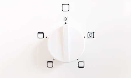 Toggle Switch of Cooker Oven. White regulator close-up photo