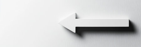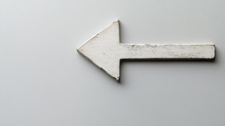 A bold white arrow points left on a smooth light gray surface, emphasizing simplicity and contemporary design while adding subtle depth.