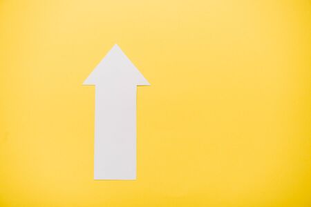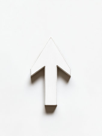 A clean white arrow is positioned in the center, symbolizing upward direction on a simple light background, conveying a sense of progress.