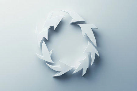 This image features a simple white circular arrow symbol on a clean, minimalist background. Ideal for representing concepts of renewal, recycling, and sustainable practices in design.