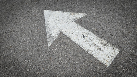 White painted arrow on asphalt road surface, representing direction and navigation in transportation contexts.