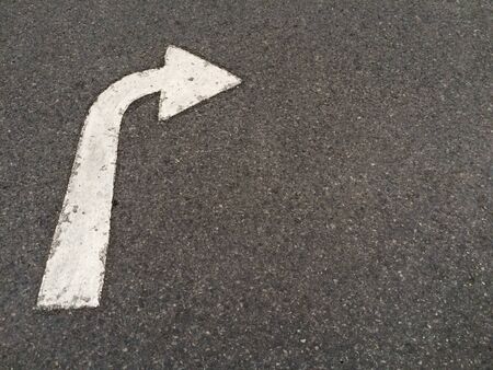 White Traffic Arrow Pointing to the Right on Dark Grungy Asphalt Road