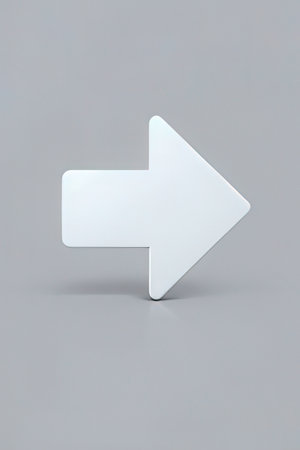 This image features a white arrow icon on a clean, minimalist background. It serves as a versatile design element for directional guidance, emphasizing clarity and modern aesthetics.