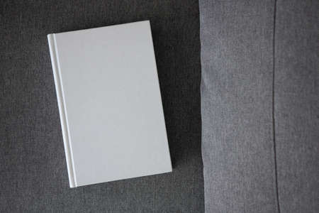 A white book wrapped in leather on a white background. photo album with a metal frame. Greeting card