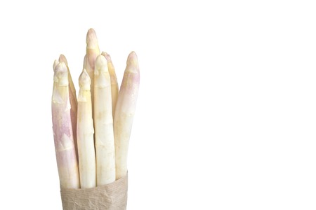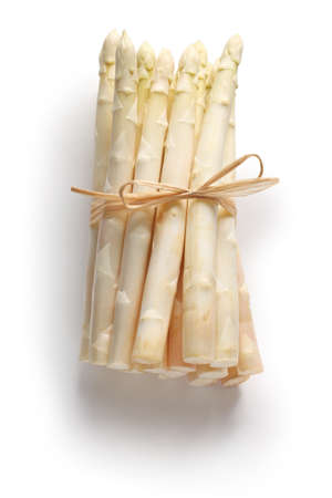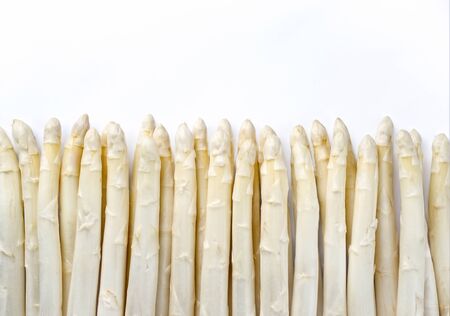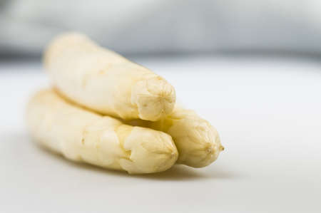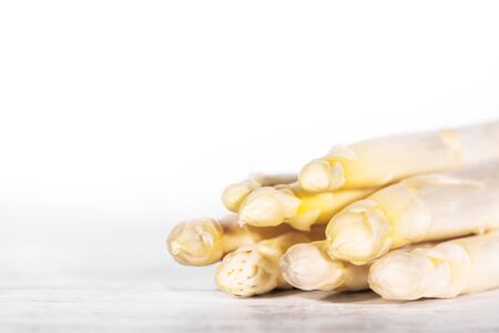 Beautiful white jumbo asparagus close up shoot over white