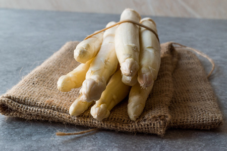 Organic Raw White Asparagus on Sack. Healthy Food.