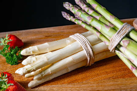 Green and white asparagus on the table