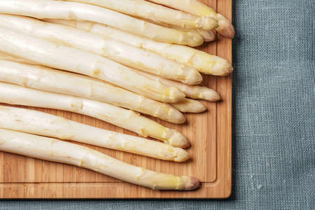 Fresh raw washed and peeled white asparagus vegetables ready to cook