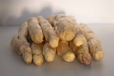 Spring season, new harvest of Dutch, German white asparagus, bunch of raw white asparagus