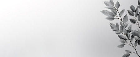 Black and white leaves on a white background. Horizontal banner.