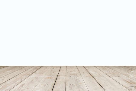Wood table for display or montage products with blank white background.